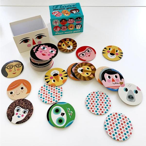 まるい形のラウンドカードにいろんな顔の描かれたメモリーゲーム。